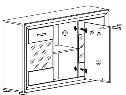 Двери шкафа могут устанавливаться как с правой, так и с левой стороны.
