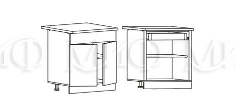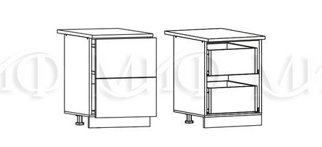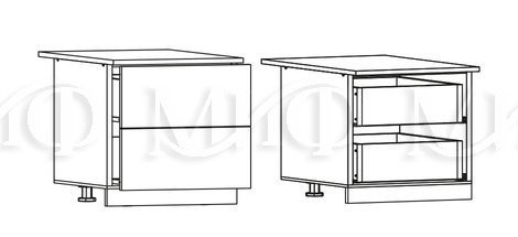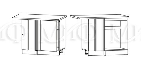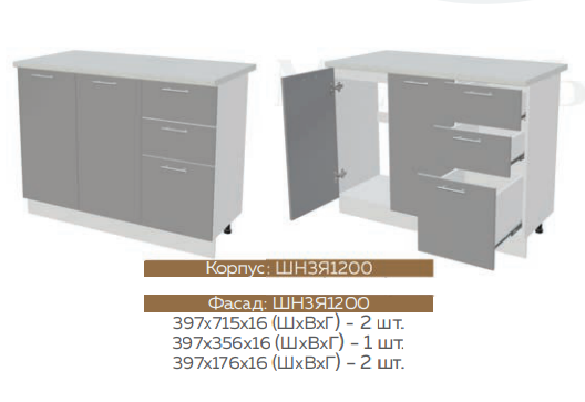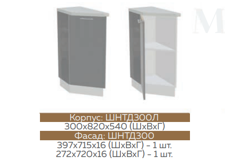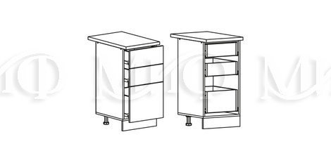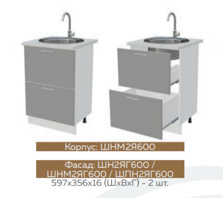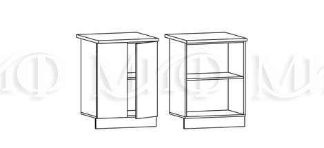 Глубина нижних шкафов без учета столешницы:490 мм, с учетом столешницы 600 мм