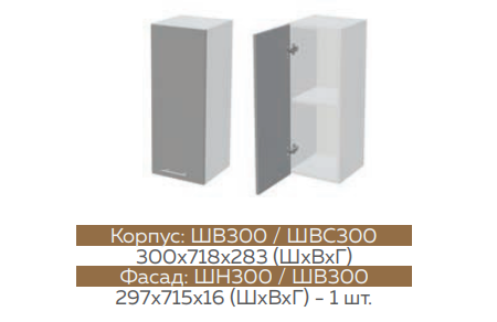 Глубина верхних шкафов: 300 мм