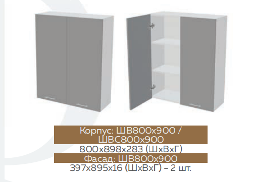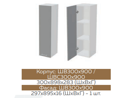 Глубина верхних шкафов: 300 мм