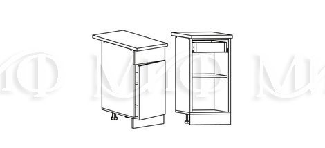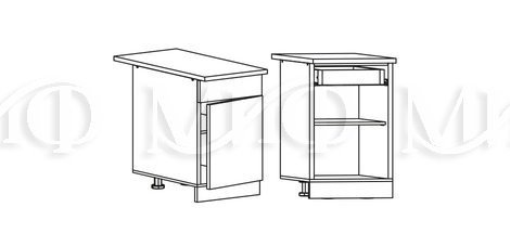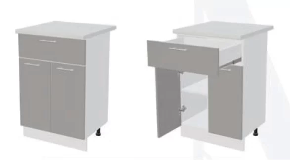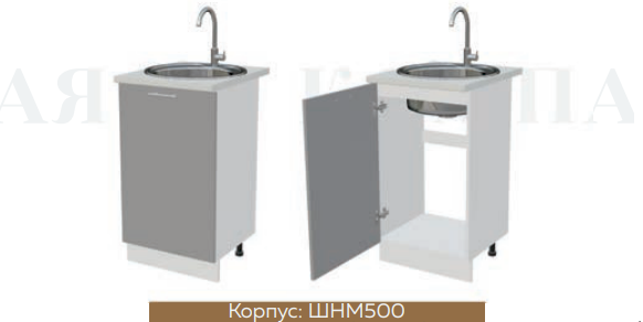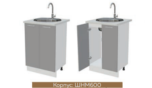 Глубина нижних шкафов без учета столешницы:490 мм, с учетом столешницы 600 мм