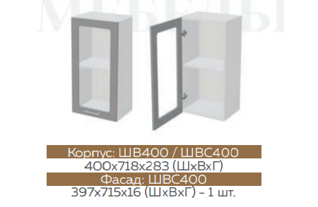 ШВСР1Д600 Шкаф верхний со стеклом и решеткой