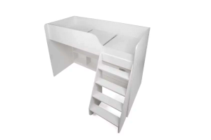 Множество полок предоставляют  места для хранения игрушек, книг и других вещей, необходимых для ребенка. Плавные линии,  выглядят красиво и современно, обеспечивают безопасность ребенку. Детская кровать, расположенная сверху, оборудована бортиками безопасности.