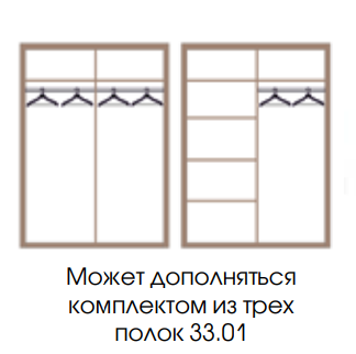 При желании два одинаковых отсека-близнеца становятся разными. Один может состоять из полок, второй – предназначаться для одежды на вешалках. Выбирайте, как вам комфортно, и что именно вам нужно.
