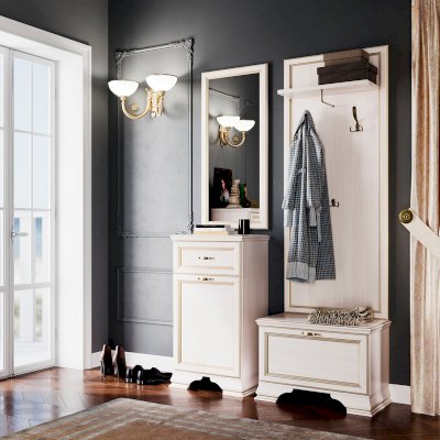 Тумба для обуви гармонично сочетается с вешалкой для одежды. Благодаря модульности коллекции «Сиена» вы можете дополнить ее другими предметами и создать свою неповторимую композицию для прихожей.
