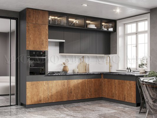 ШНУ1000 Шкаф нижний угловой левый Графит софт/Экзотическое дерево Амазония