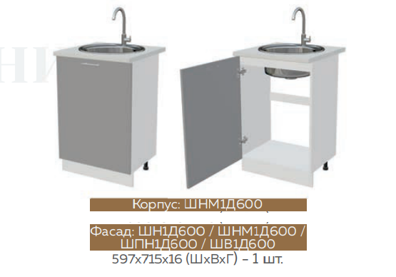 Глубина нижних шкафов без учета столешницы:506 мм, с учетом столешницы 600 мм