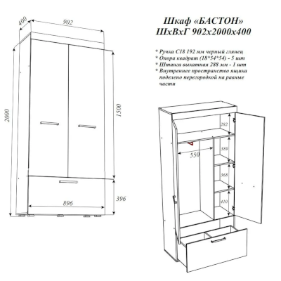 Шкаф Бастон (Эра) - за 12 440 руб. в Тамбове. Купите на сайте mebelmarket-tambov.ru или по телефону 8(800)505-30-63 уже сегодня! Уточнить наличие, комплектацию, актуальную цену можно бесплатно у менеджера ежедневно. Закажите Шкаф Бастон (Эра) до конца акции! Доступна покупка в кредит, рассрочку. Доставим со склада или на заказ.