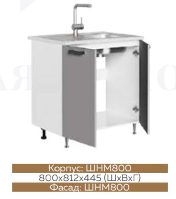 Глубина нижних шкафов без учета столешницы:445 мм, с учетом столешницы 600 мм