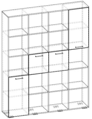 Применение задней стенки из ЛДСП (в ячейках с фасадами) позволяет использовать данный стеллаж для зонирования пространства (чтобы предотвратить опрокидывание, необходимо обеспечить крепление стеллажа к стене).