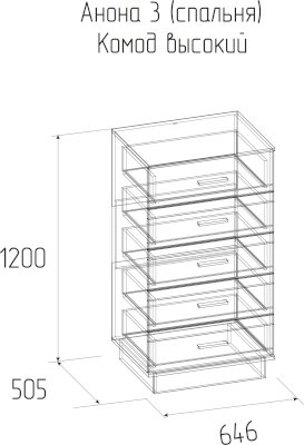 Высокий комод Анона 3 (Глазов) - за 19 409 руб. в Тамбове. Купите на сайте mebelmarket-tambov.ru или по телефону 8(800)505-30-63 уже сегодня! Уточнить наличие, комплектацию, актуальную цену можно бесплатно у менеджера ежедневно. Закажите Высокий комод Анона 3 (Глазов) до конца акции! Доступна покупка в кредит, рассрочку. Доставим со склада или на заказ.