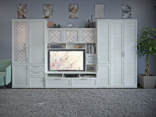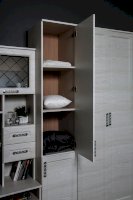 Пенал – идеальная система хранения для гостиной. За дверкой расположены полки. Удачные габариты делают этот пенал вместительным.