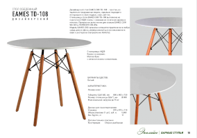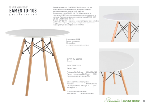 Дизайнерский стол EAMES D80 TD-108  - простая, но тщательно продуманная модель, идеально подходит к интерьерам в стиле модерн, лофт, хай-тек. Столешница стола EAMES D80 выполнена из практичной МДФ-плиты с ножками из сочетания дерева и металла. Модель EAMES D80 TD-108 органично впишется практически в любую среду дома и офиса, универсальный для использования в кафе и ресторанах (направление «Horeca»).